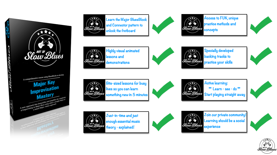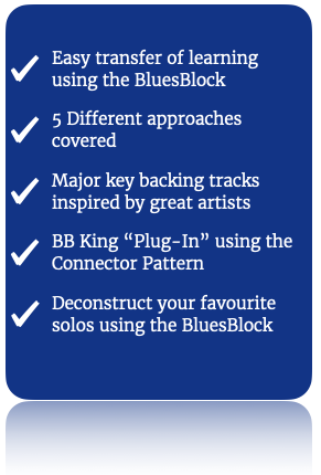 Lead Guitar Soloing and Improvisation Course, students explore different approaches to Major and mixed Major/ minor soloing techniques using the familiar BluesBlock